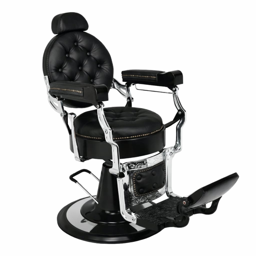 כיסא ברבר מפואר ומקצועי בסיס עגול צבע כרום ניקל  ידיות והדום רגליים בצבע ניקל , משענת גב לאחור עם כרית לראש + בוכנה גבוהה
