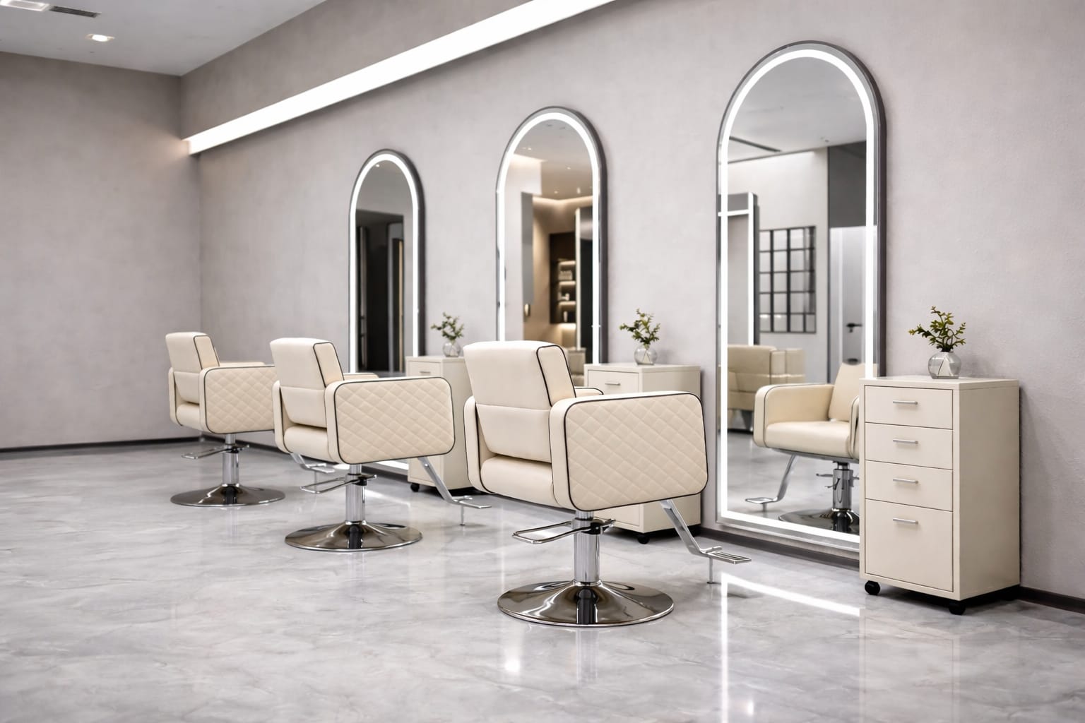 דיל מקצועי ומעוצב למספרות הכולל 3 עמדות עבודה מלאות – שילוב מושלם של נוחות, עיצוב יוקרתי ופונקציונליות גבוהה.