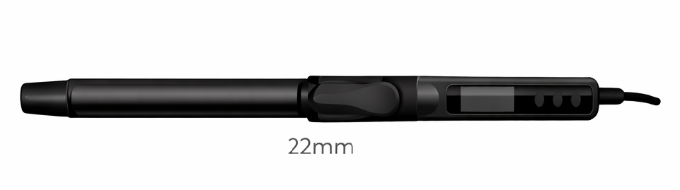המסלסל כולל קוטר 22 מ״מ, עיצוב ארגונומי נוח לאחיזה, תצוגה דיגיטלית לשליטה בטמפרטורה וחימום מהיר, המאפשרים עבודה מדויקת ונוחה לאורך זמן.