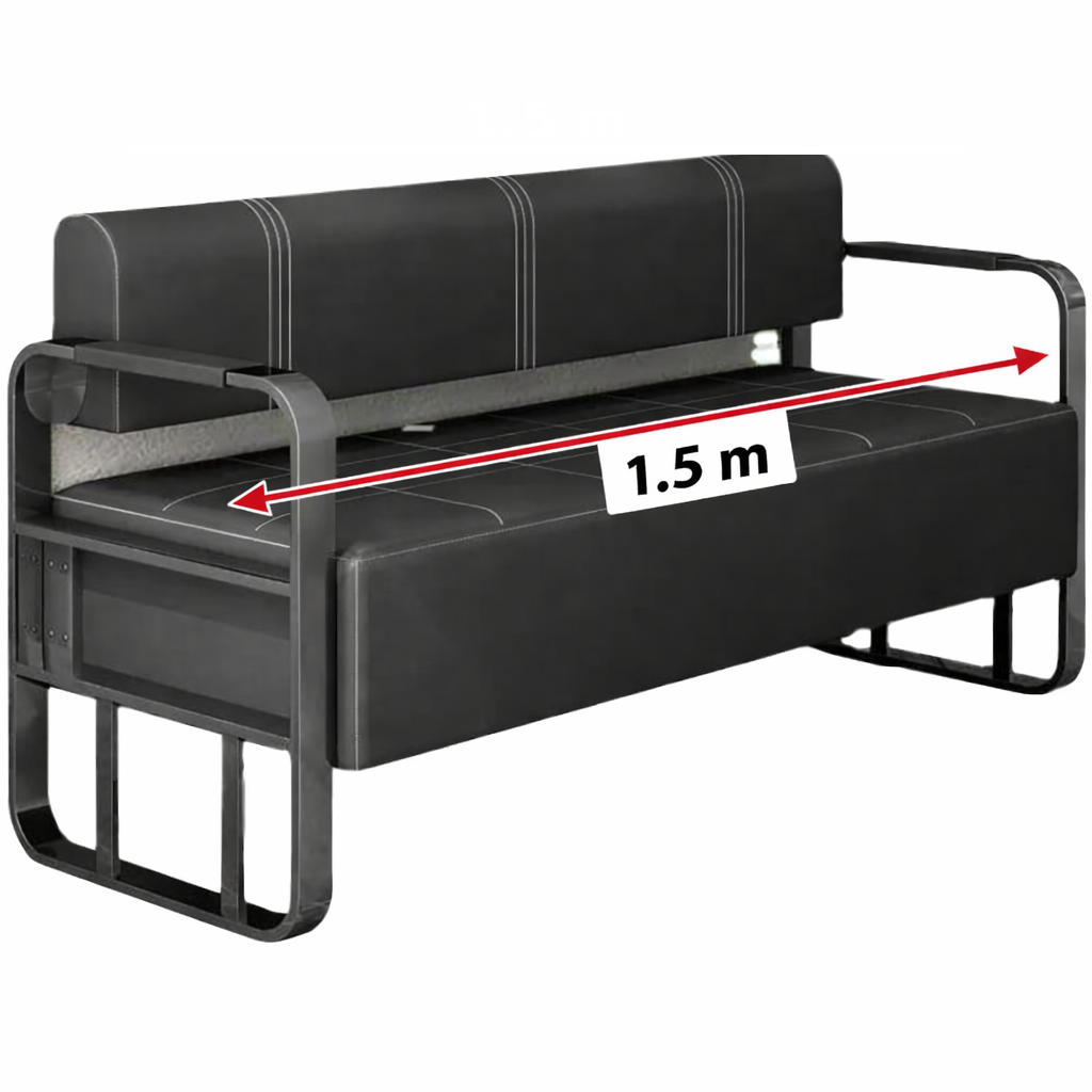 ספת המתנה איכותית באורך 1.5 מטר עם מסגרת מתכת שחורה חזקה וריפוד נוח לישיבה ממושכת. מתאימה לחדרי המתנה, קליניקות, משרדים, מוסדות ציבוריים וחללי קבלה. העיצוב המודרני והנקי משתלב בקלות בכל סביבה ומעניק מראה מקצועי ומסודר.