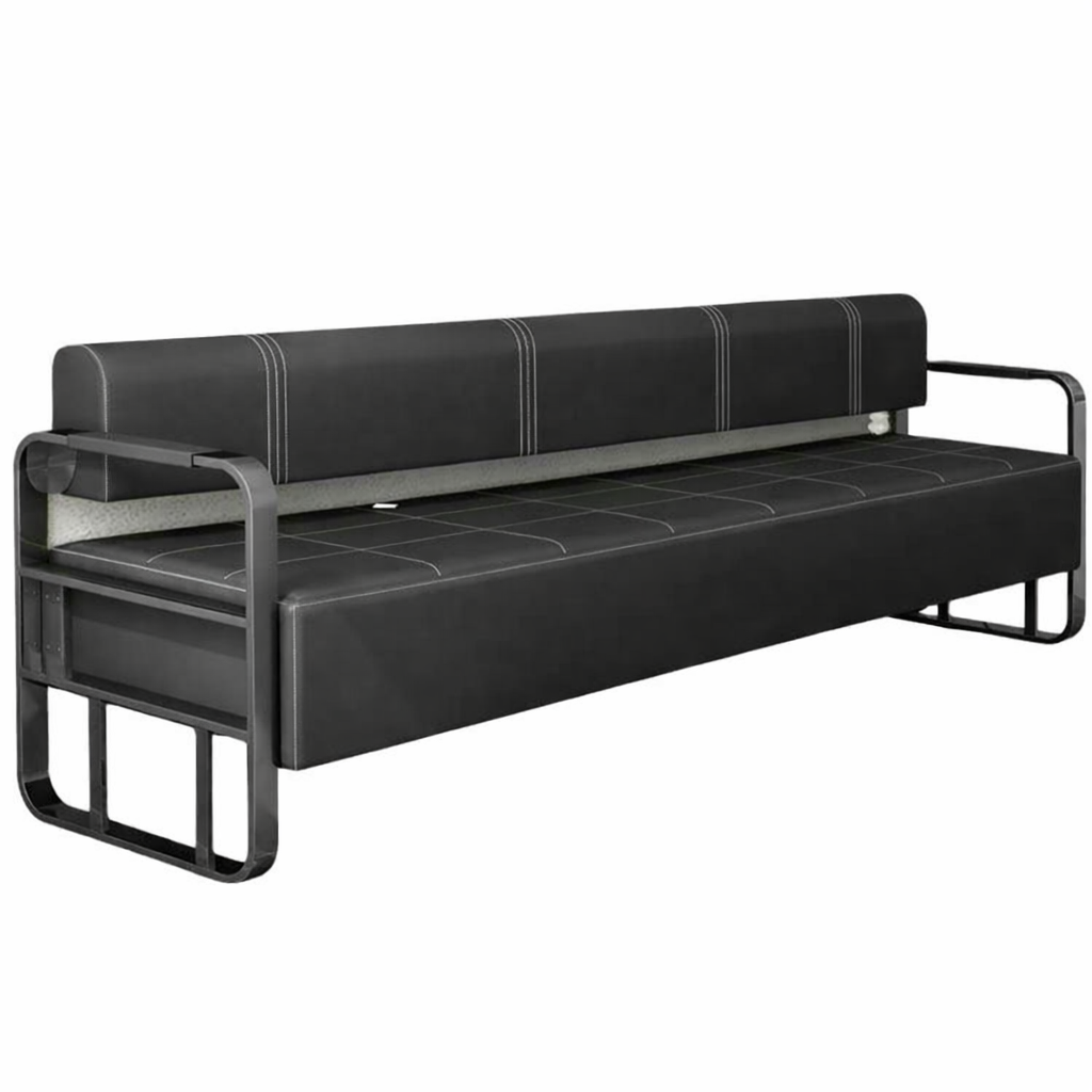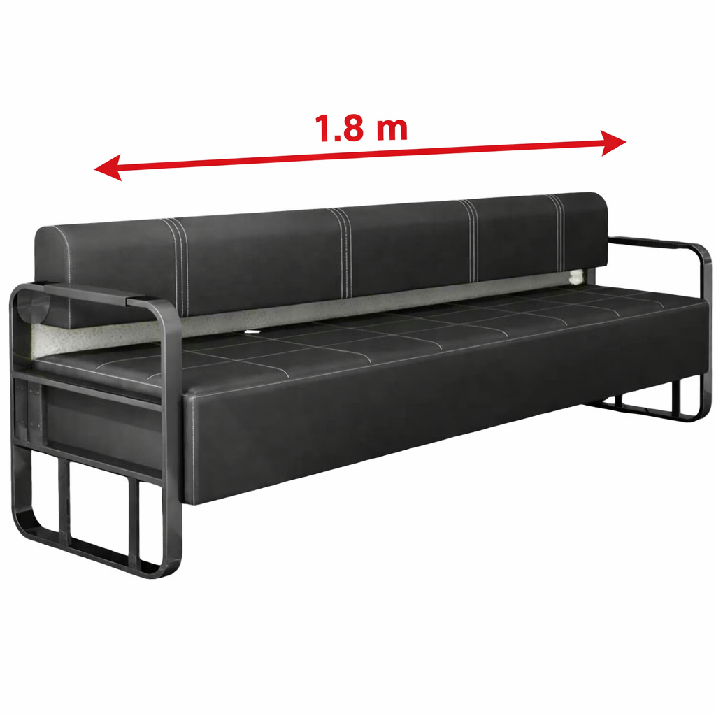 ספת המתנה באורך 1.8 מטר עם מסגרת מתכת שחורה חזקה וריפוד איכותי לישיבה נוחה לאורך זמן.
