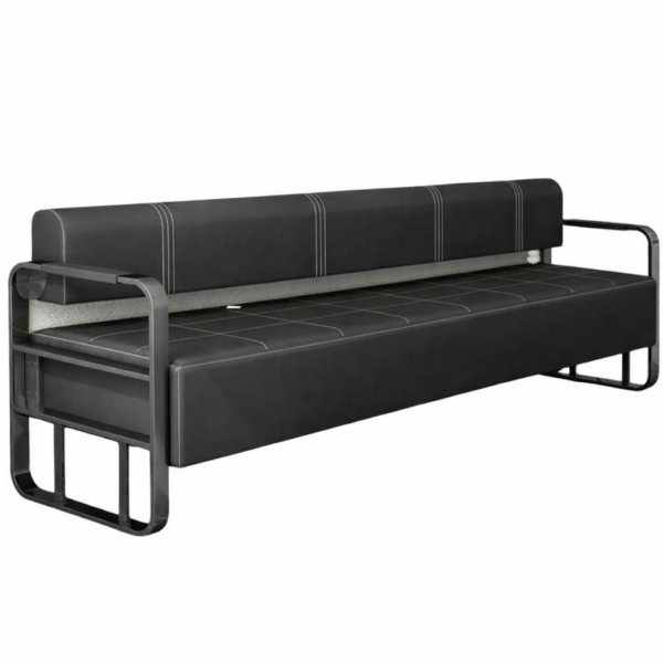 ספת המתנה באורך 1.8 מטר עם מסגרת מתכת כסופה חזקה וריפוד איכותי לישיבה נוחה לאורך זמן.
