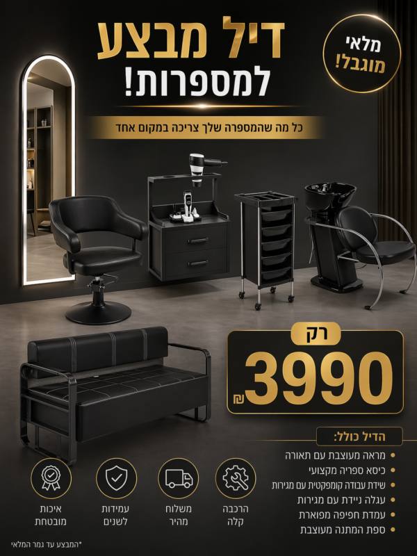 משלוח חינם ברכישה מעל 500 ש״ח – מלבד ריהוט מספרות